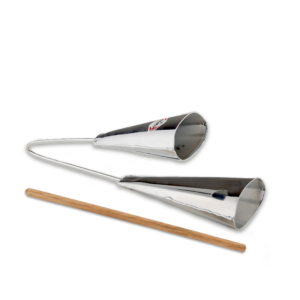 L’agogô, cloche d’origine africaine, est un instrument à la fois harmonique et rythmique formée d’un ensemble de deux cloches frappées avec une baguette en bois.
