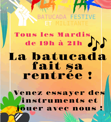 La batucada Plakatak fait sa rentré ! Rejoignez nous le mardi 2 Septembre de 19h à 21h dans la Salle des fêtes, le bourg, Le Moustoir 22340. Venez essayer des instruments et jouer avec nous !